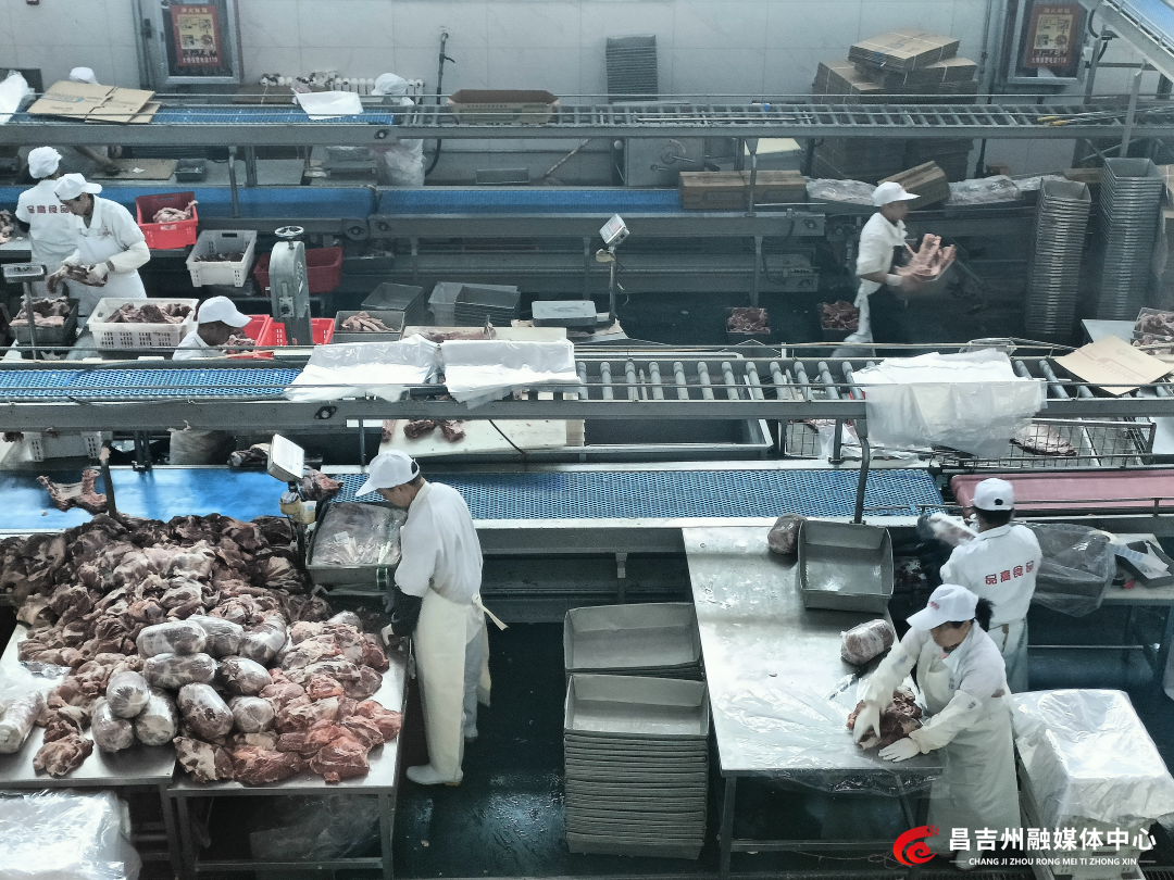 在新疆品高食品有限公司生產車間,工人在分割肉品。記者劉茜 攝