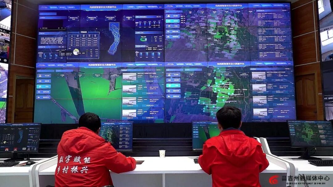 在瑪納斯縣數(shù)字農(nóng)業(yè)中心,技術(shù)人員正在通過(guò)智慧農(nóng)業(yè)大數(shù)據(jù)平臺(tái)監(jiān)測(cè)數(shù)字農(nóng)田的氣象、墑情、苗情、蟲情。資料圖